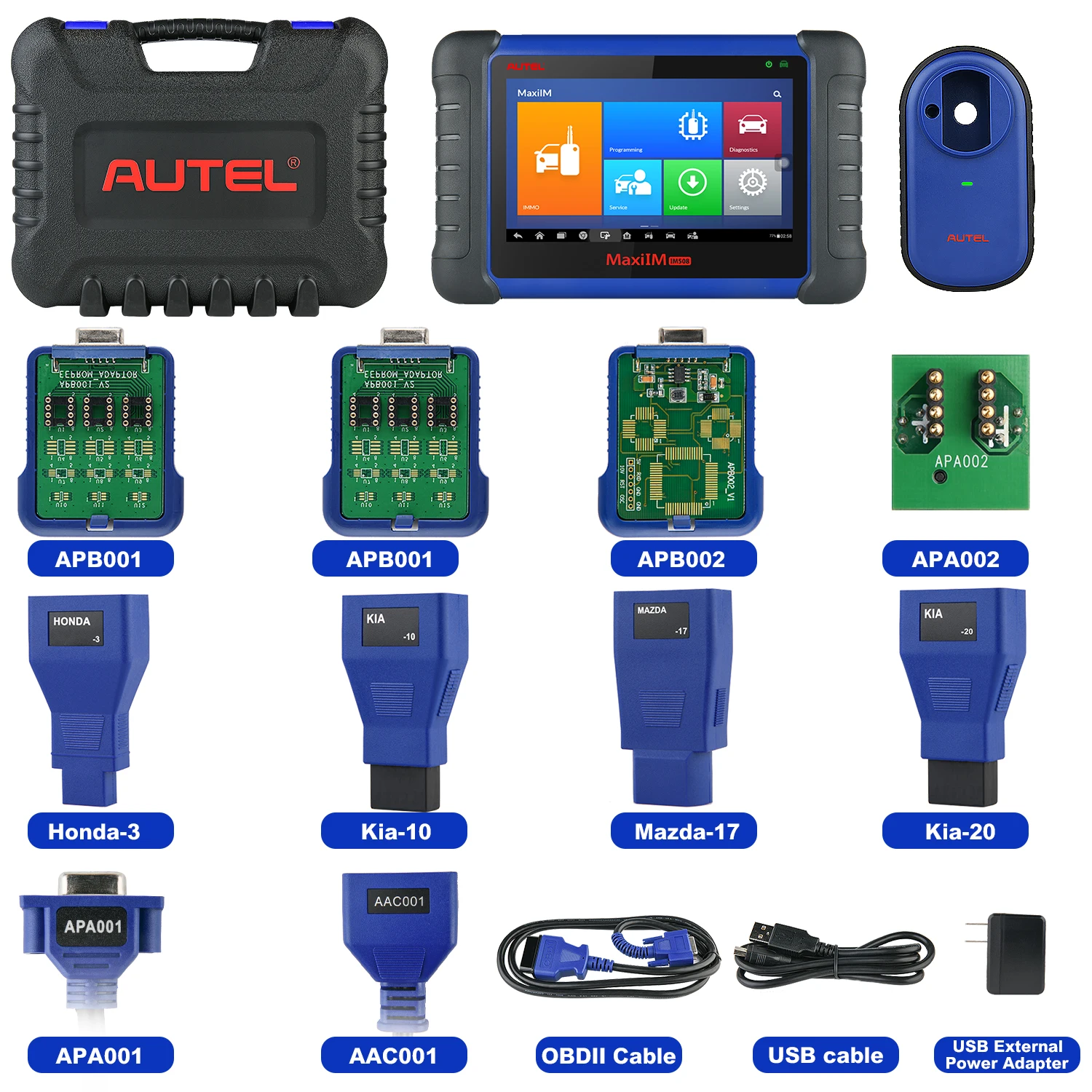 Инструмент для программирования автомобильных ключей Autel MaxiIM IM508 поставляется с комплексными функциями IMMO, в том числе: считывание PIN/CS (все ключи утеряны), поколение ключей, обучение клавишам, дистанционное обучение на различных местах, benz FEM/BDC ключ обучения/ECU адаптация, BMW CAS3/2 ключ обучения, VW/Audi/Skoda/Seat IMMO III/IV/V добавить ключ, все ключи потеряны, IMMO ECU reset/адаптация/обновление/кодирование, IMMO Резервное копирование/восстановление данных.