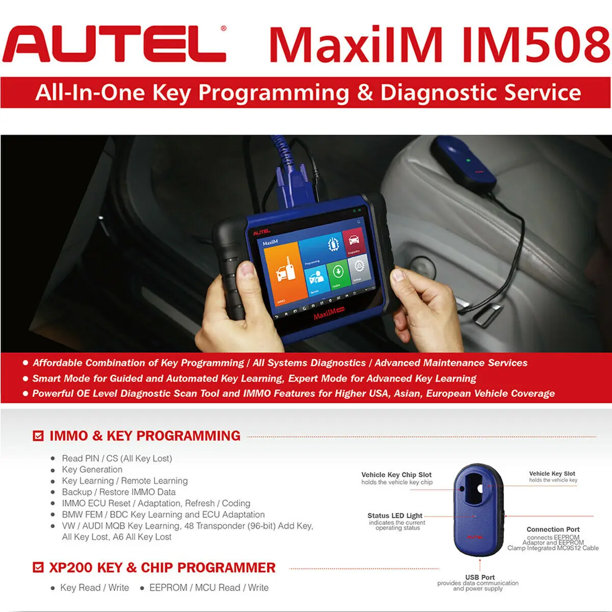 Примечание: с помощью XP400 Key Programmer IM508 расширит свои возможности, чтобы стать одним из ведущих инструментов программирования Autel.