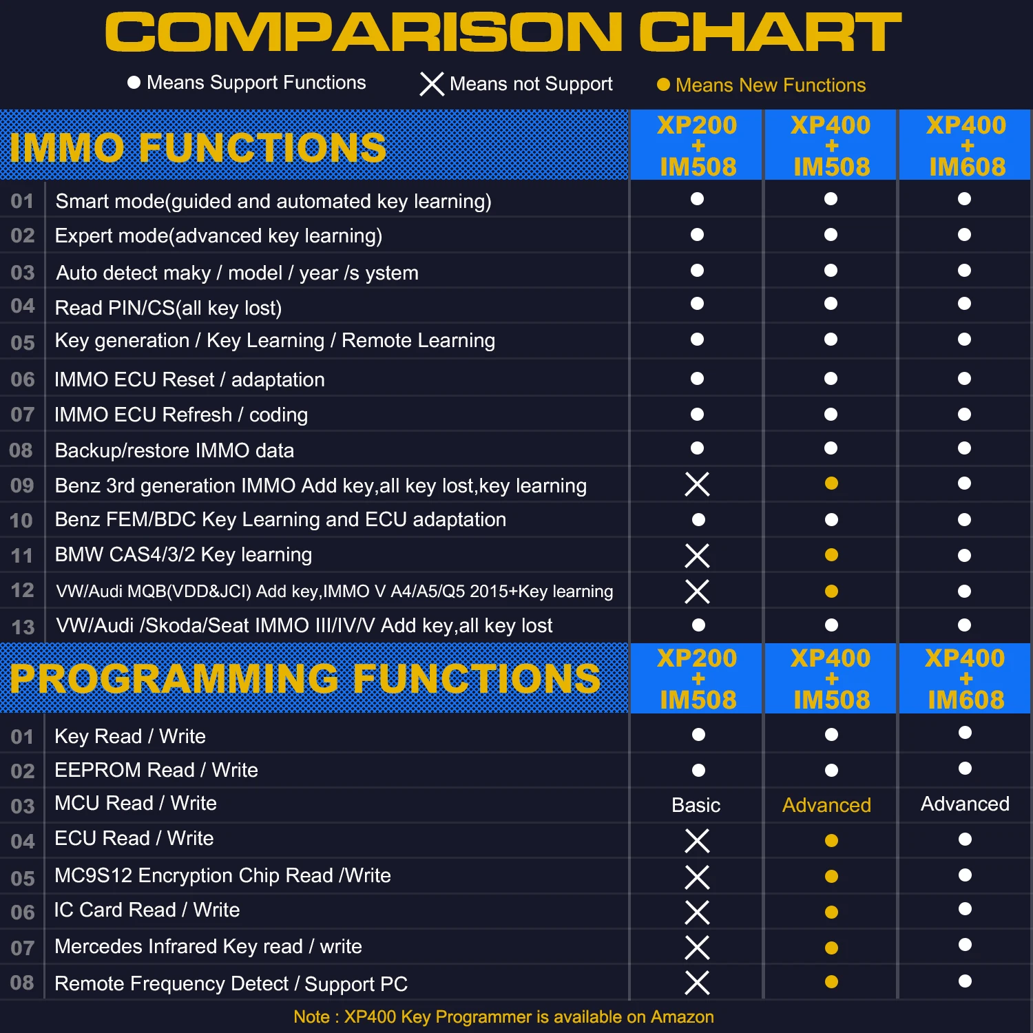 1. При подключении к программатору XP400, IM508 сможет поддерживать Benz 3-го поколения IMMO, BMW CAS4 key Learning и VW/Audi MQB(VDD & JCI) Add key, IMMO V A4/A5/Q5 2015 + ключ обучения.