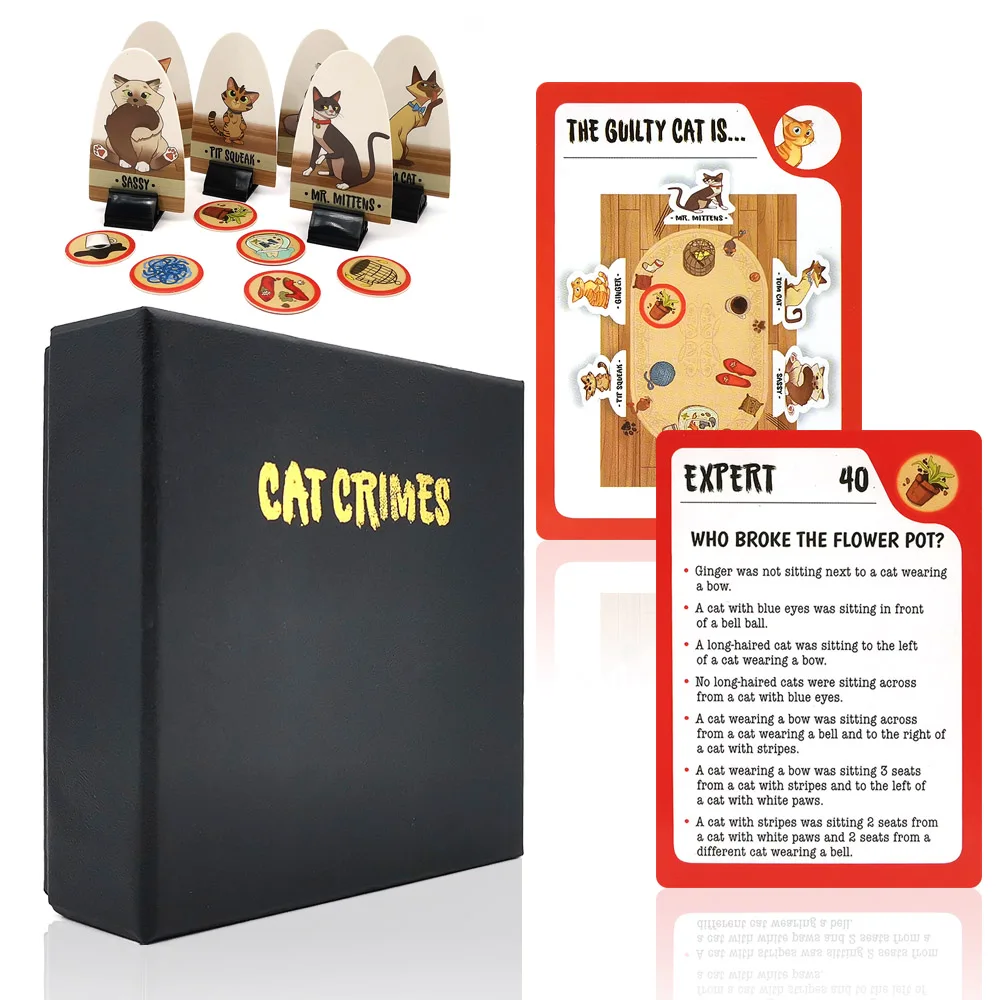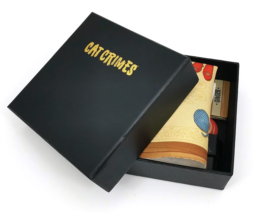 cat crimes = cards tokens+ + cloth game board + hard paper black box + English rules,