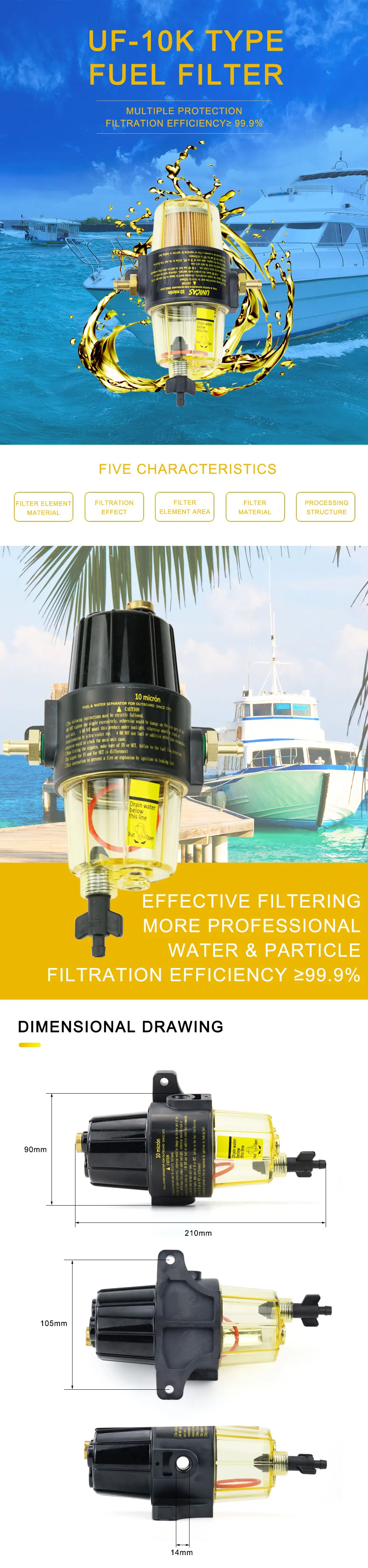 Топливный фильтр в сборе UF-10K водоотделитель с прозрачной чашей для Yamaha Suzuki Tohatsu Mercury подвесной двигатель TPR-225