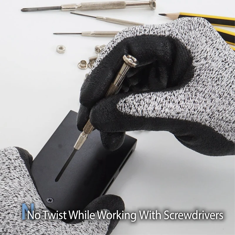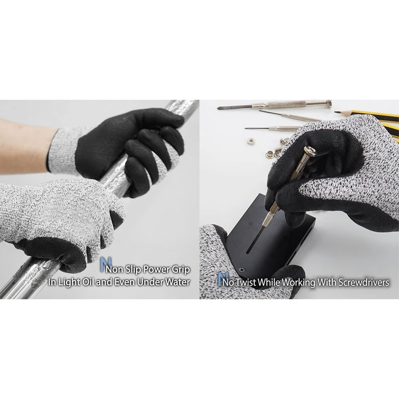 BEST COMFORTABLE ERGONOMIC FLEX SNUG FIT into all fingers. LIGHTWEIGHT 13-gauge HPPE and Spandex performs outstanding delicate professional MANUAL DEXTERITY at various utility tasks