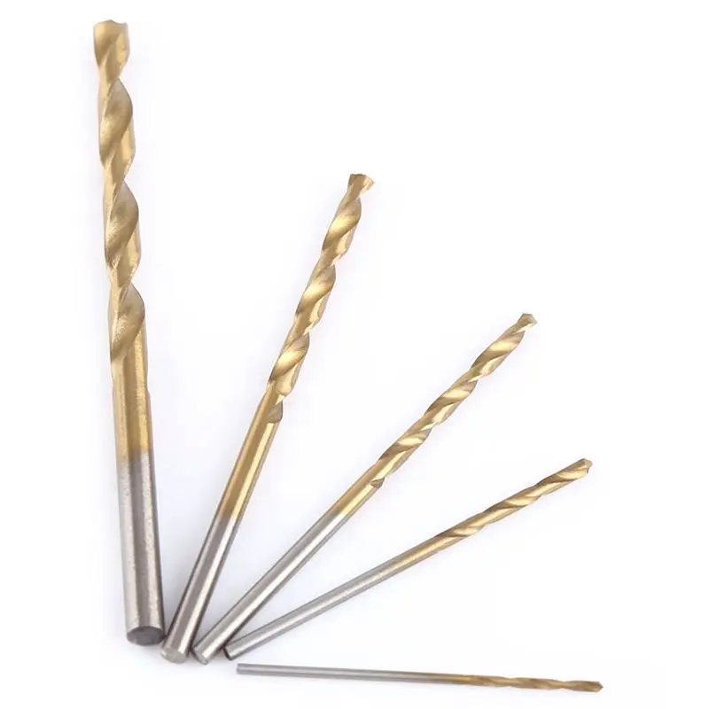 Поверхность сверла покрыта титаном, что придает ей красивый цвет. Есть 19 штук сверло в разных размеров и самые популярные сверла. Они отлично подходят для большинства буровых работ и материалов, таких как алюминий, дерево, пластик. Острые скрученные сверла сделают сверление более легким и легким.