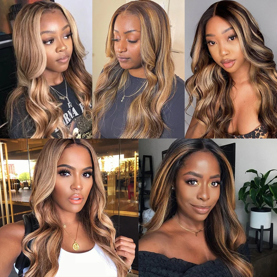 Выделите парик бразильский объемный волнистый кружевной передний парик Омбре 180 плотность Выделите бесклеевые кружевные передние человеческие волосы парики для черных женщин