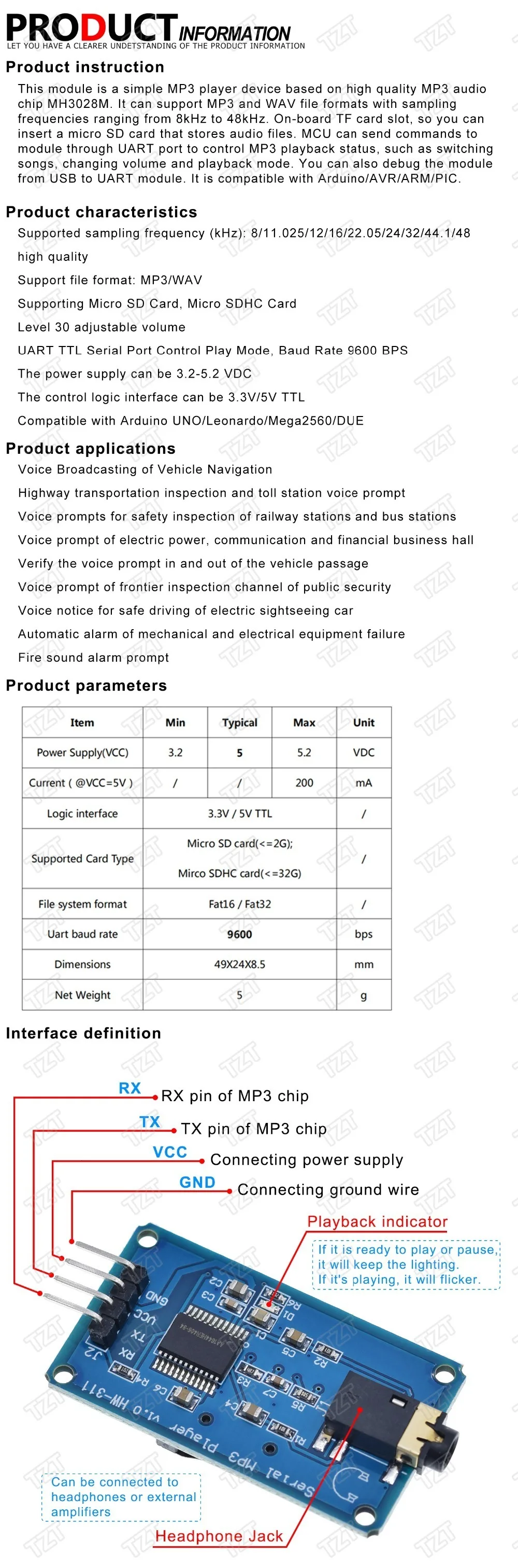 1 x YX5300 UART управления Серийный MP3 музыкальный плеер модуль для Arduino/AVR/ARM/PIC