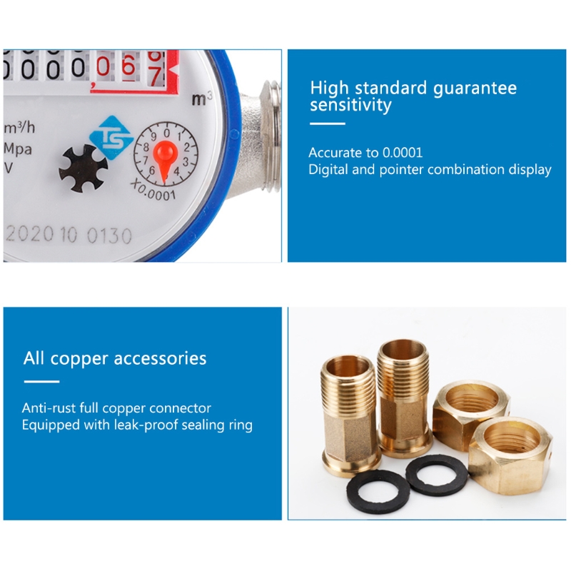 Увеличьте световой поток для уменьшения потери давления: с гарантированной производительностью, увеличенными отверстиями на входе воды и выходе коробки крыльчатки, эффективно уменьшает потерю давления счетчика воды