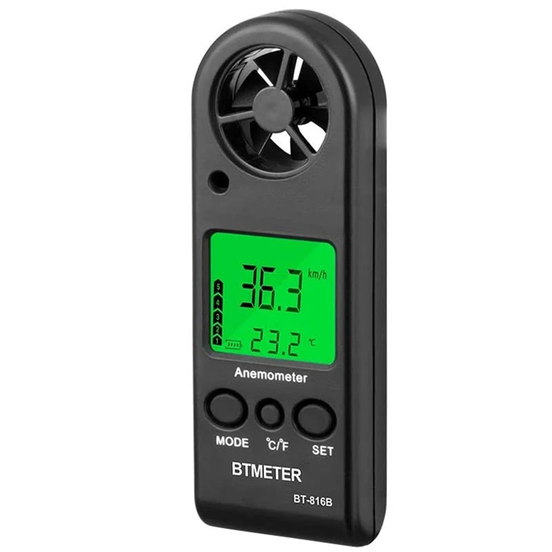 Компактный анемометр с термометром ручной простой с одной рукой дизайн с ЖК-цифровой подсветкой ветромер, он компактный, так что вы можете носить его в любом месте вам может потребоваться измерить скорость ветра и температуру