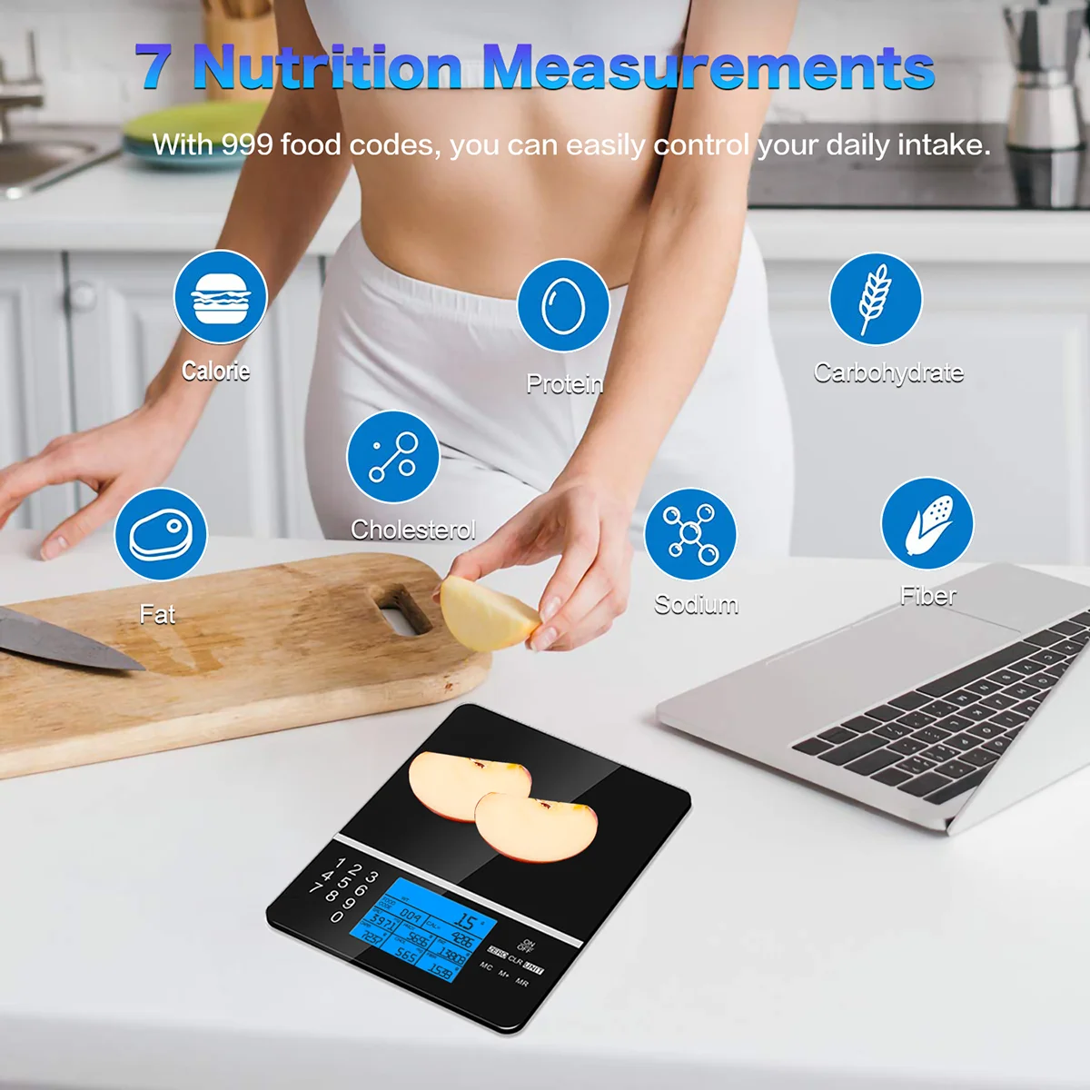 4 единицы преобразования и памяти: плавно меняйте единицы измерения между унциями, фунтами, граммами и мл; И если вы хотите узнать информацию о питании за всю еду, просто сохраните факты питания в функции памяти шкалы и легко рассчитать сумму.