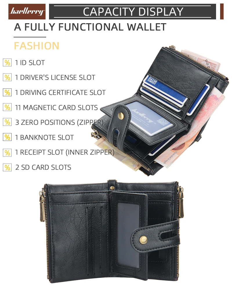 Внутренняя структура небольшой сумки: скрытый отсек, держатель для купюр, слот для фото, слот для замены, отделение на молнии, слот для карт