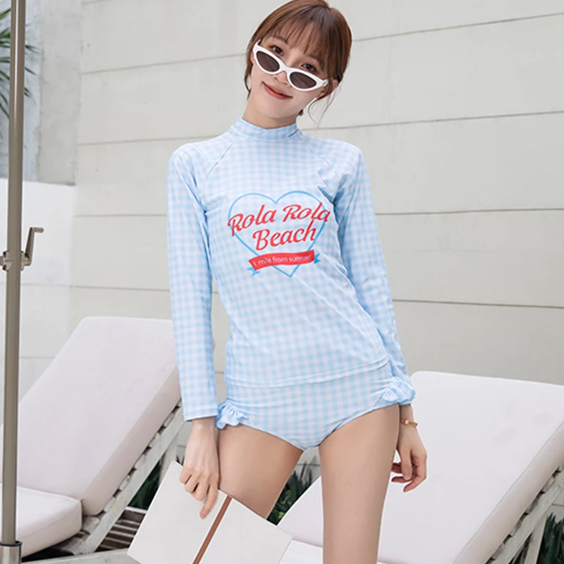 Школьный костюм для косплея для девочек; Милый клетчатый купальник из двух предметов с длинными рукавами; Купальный костюм пуш-ап с оборками; Танкини; Купальный костюм