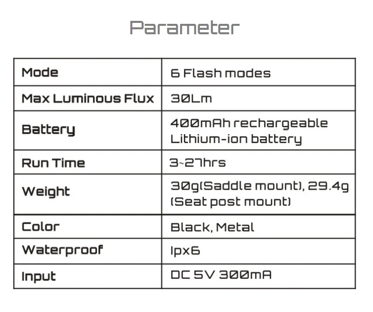 Вес: 30 г (крепление на седло), 23,4 г (крепление на сиденье)
