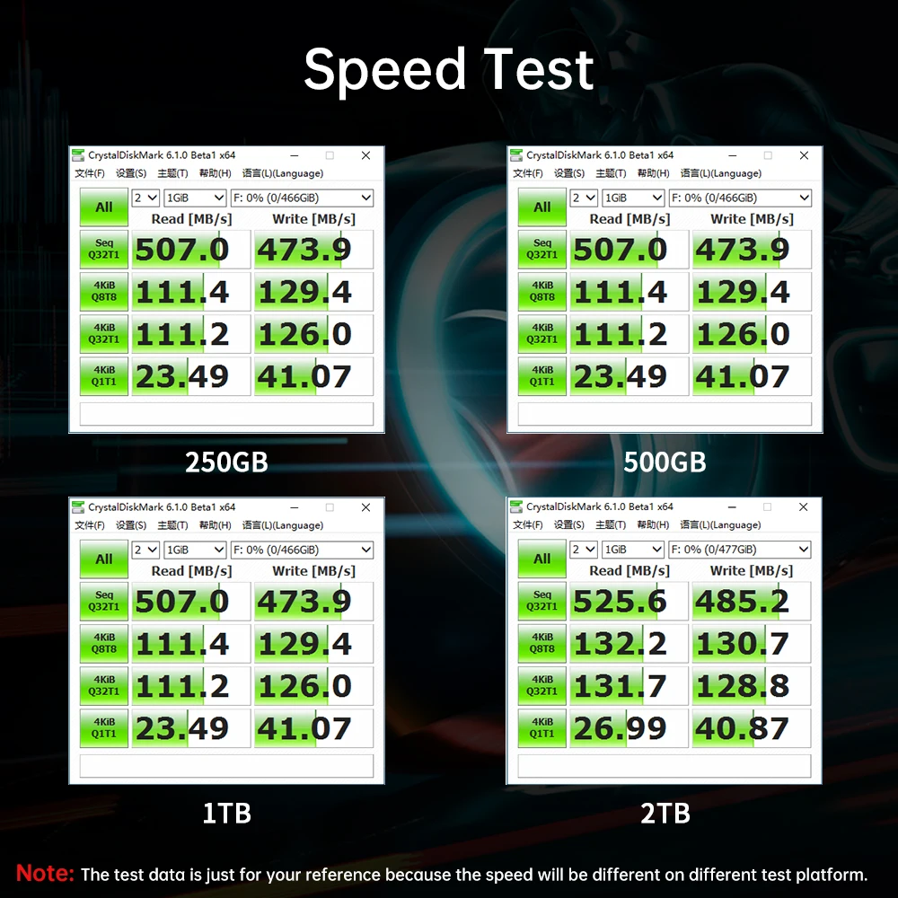 Емкость: 250 ГБ, 500 Гб, 1T,2 ТБ