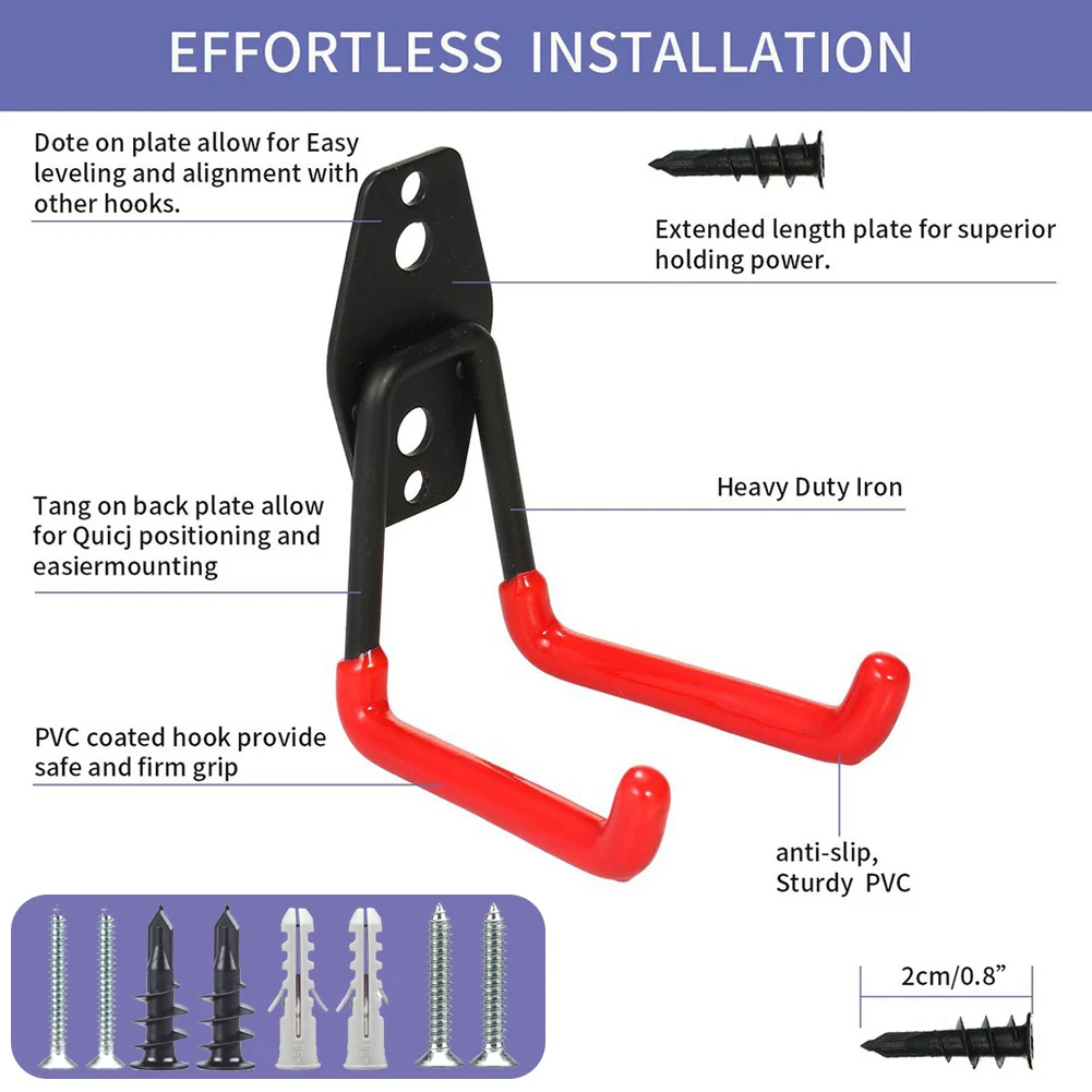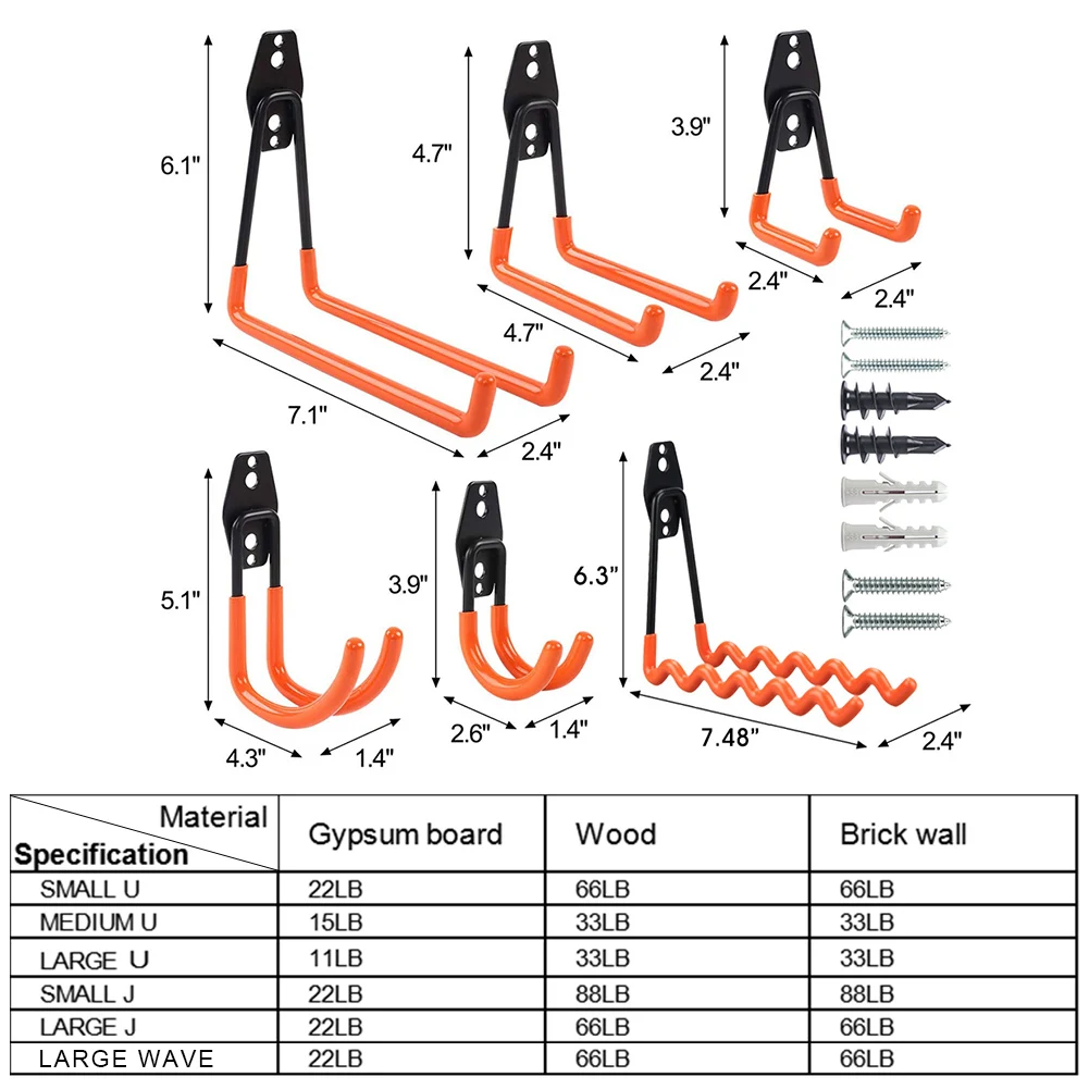 * 5. Гаражные крючки могут фиксировать различные инструменты и надежно держать их, такие как лестницы, велосипеды, бромы, лопаты, электроинструменты, спортивное оборудование и многие другие тяжелые предметы. Предназначен для вашего гаража, сада, магазина, подвала или склада.