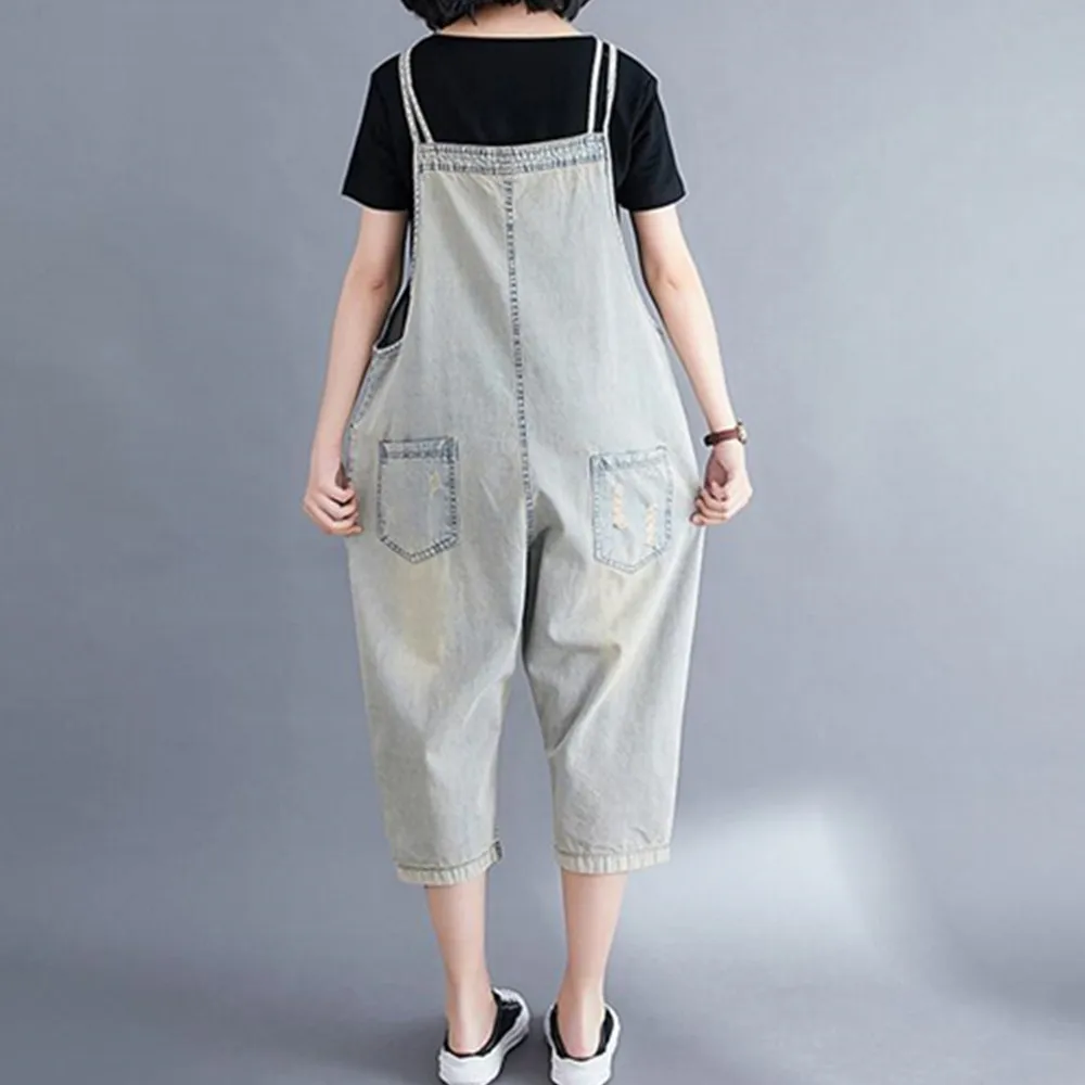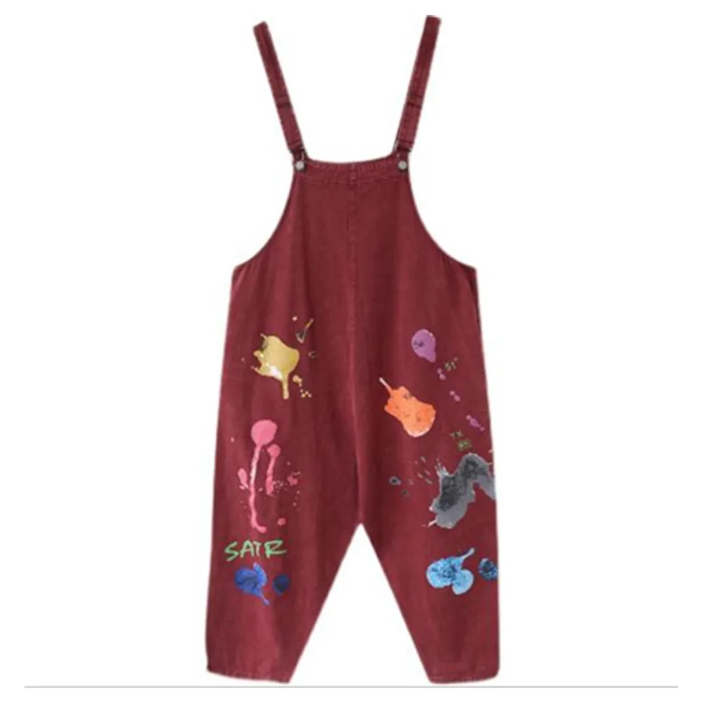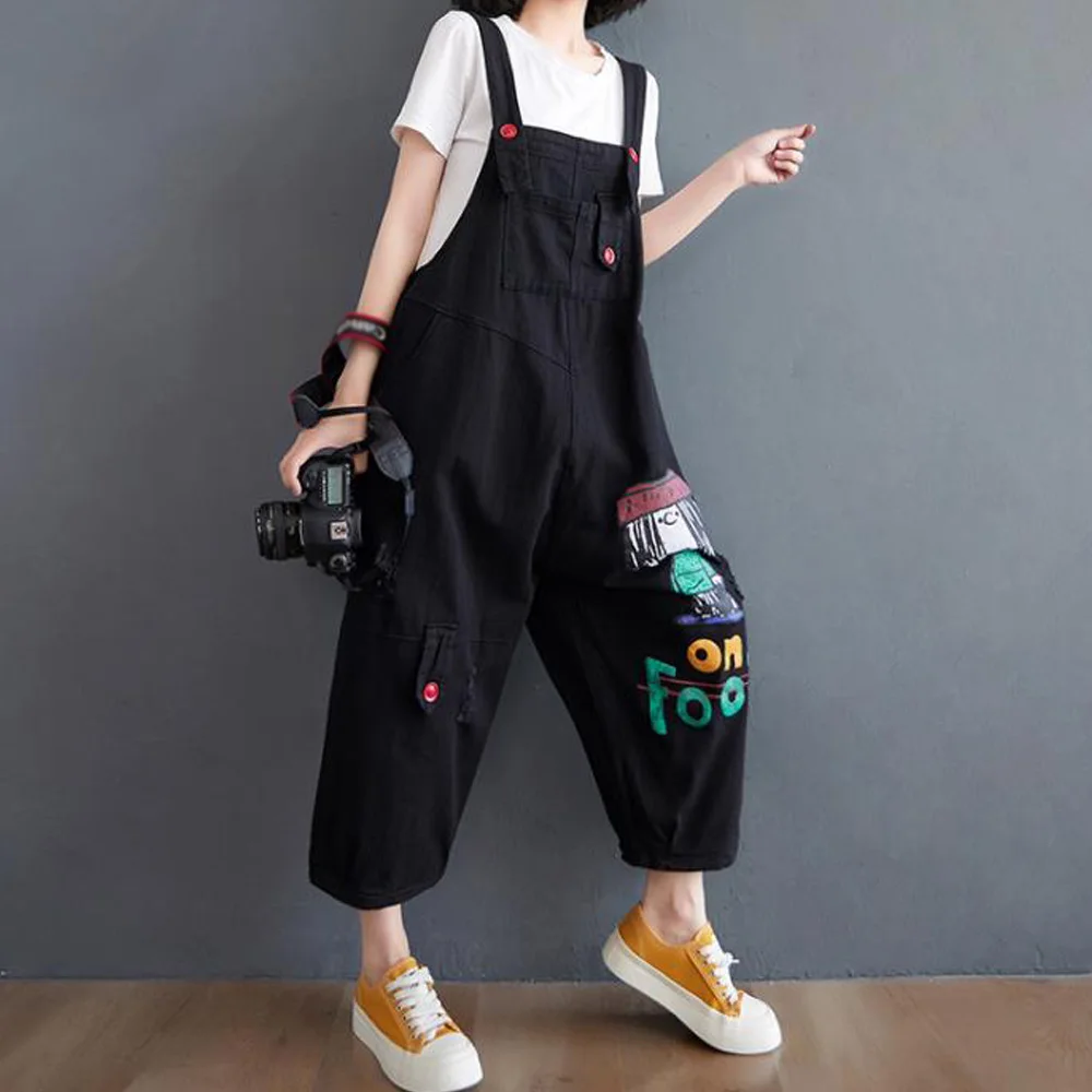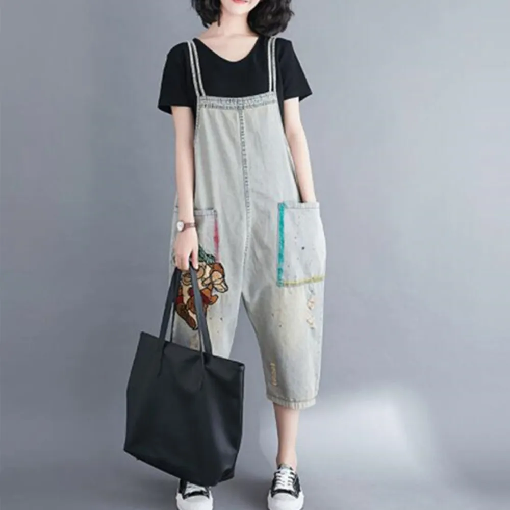 Название: Повседневный свободный джинсовый комбинезон размера плюс; Женская одежда; Сезон весна-осень; Джинсовый комбинезон с героями мультфильмов; Комбинезон с широкими штанинами; Мешковатые брюки