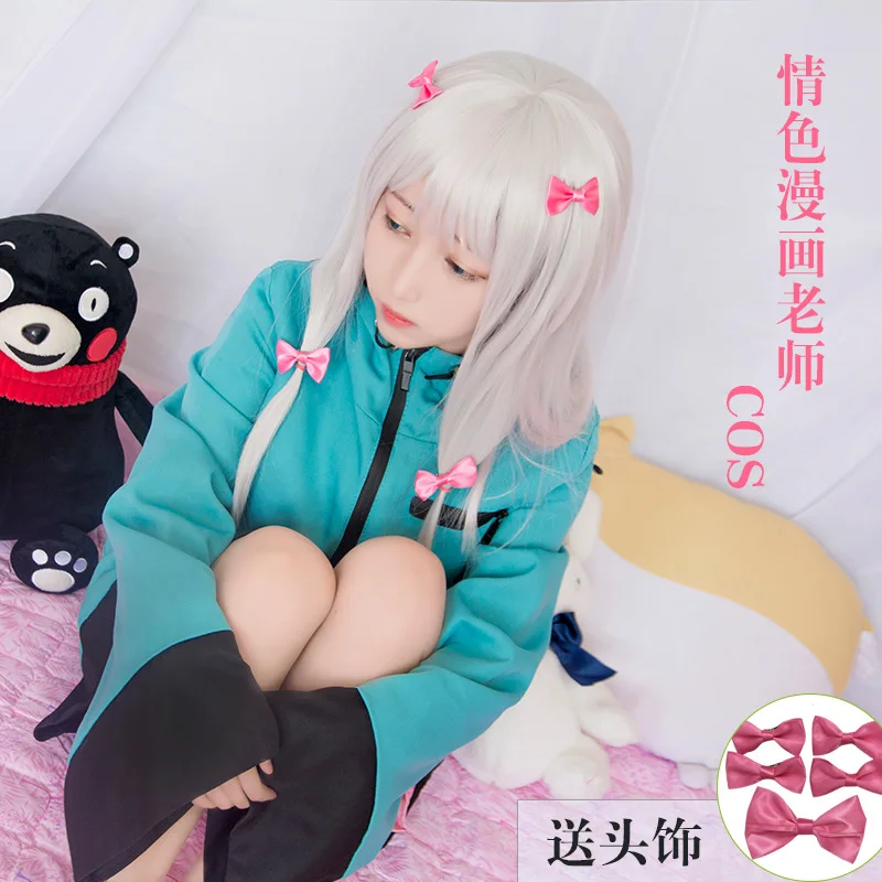 Аниме "Eromanga-Sensei" Косплэй костюмы Izumi Sagiri розовая пижама с принтом синей джинсовой куртки длинное серебряное парик Ero-сенсей Kawaii обувь для девочек в стиле «лолита»