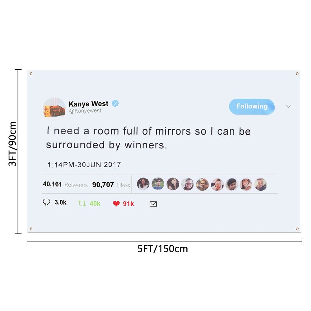 Забавный напечатанный твит флаг мне нужен номер, полный зеркал, так что я могу быть окружен победителями Колледжа Общежития вечерние стены флаг баннер