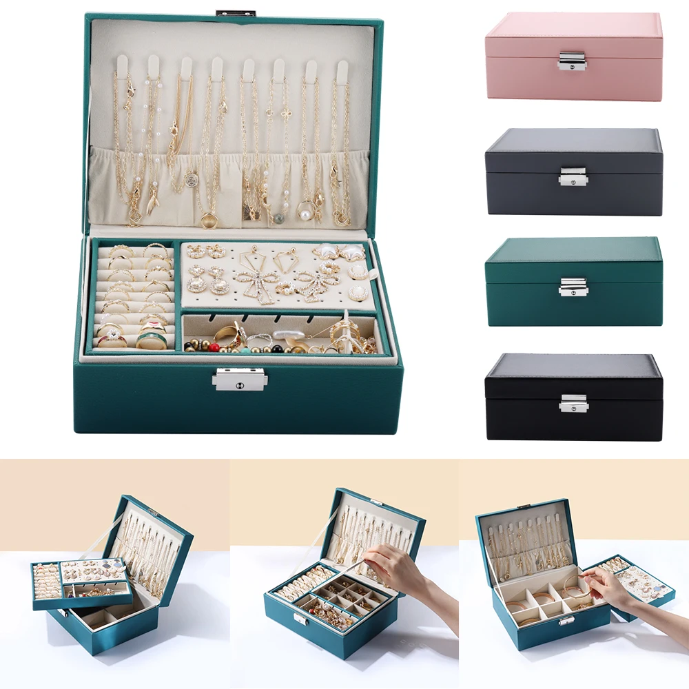 Двухслойная вместительная кожаная шкатулка для ювелирных украшений, органайзер для путешествий, многофункциональное ожерелье, серьги, кольцо, коробка для хранения ювелирных изделий