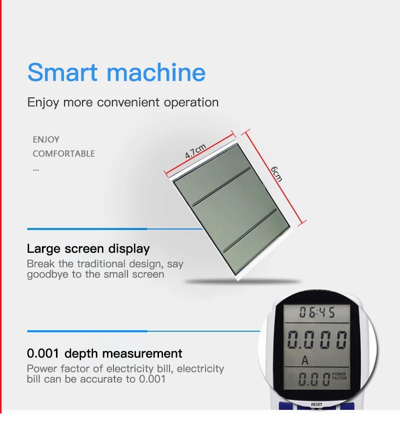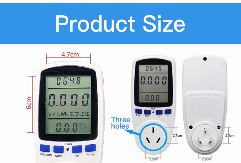 ① Отображение времени; ② напряжение/ток/мощность/Потребляемая мощность; ③ коэффициент мощности/значение частоты/электричества; ④ Вольт: напряжение; Ампер: ток; (кВт · ч) градусы: потребление электроэнергии; Вт: мощность; Сигнализация перегрузки: напоминание о перегрузке. ⑤ Коэффициент мощности: отношение активной мощности к видимой мощности; Герц: частота переменного тока; Дни: совокупные дни потребления электроэнергии; Юань: общее количество потребляемой мощности; Степень: совокупное потребление электроэнергии; юань/градус: цена за единицу электроэнергии.