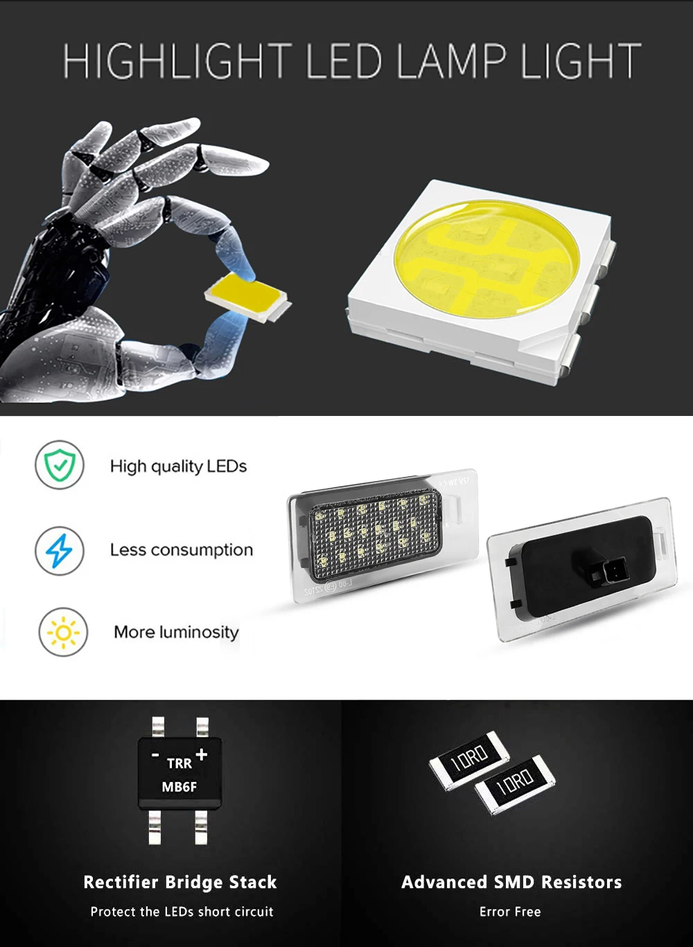 -Каждый светильник имеет 18 высококачественных янтарных светодиодных чипов, в 2-3 раза ярче, чем на складе, боковые маркеры ламп накаливания.