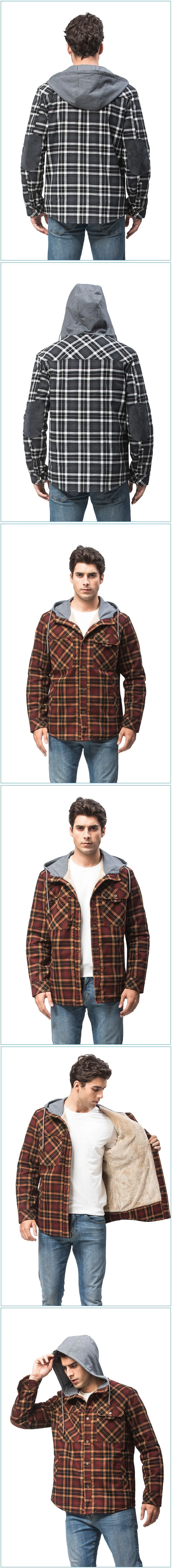 Мужская Фланелевая рубашка, зимняя теплая рубашка с капюшоном, флисовая клетчатая куртка, Мужская Повседневная рубашка с длинным рукавом