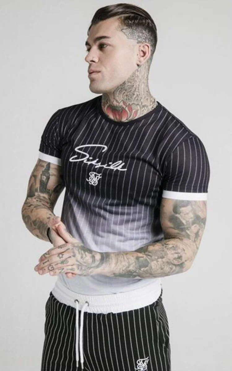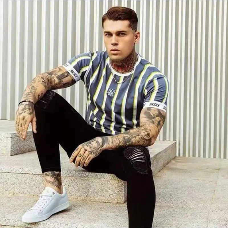 2021 Sik шелковая летняя Мужская Новая повседневная футболка, модная полосатая брендовая уличная одежда в стиле хип-хоп с короткими рукавами, спортивные тонкие Топы