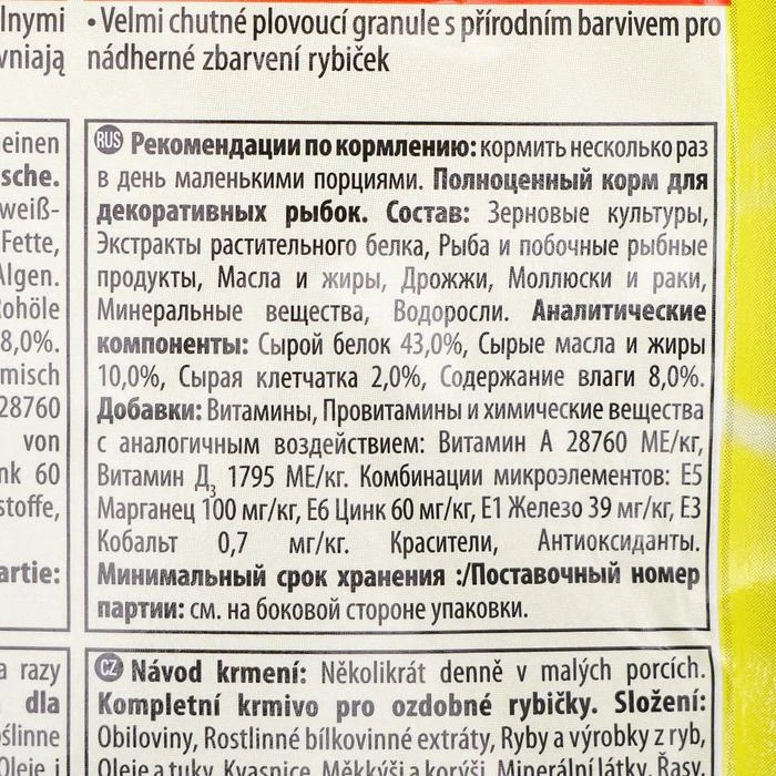 | Вид корма для рыб и рептилий | Гранулы |