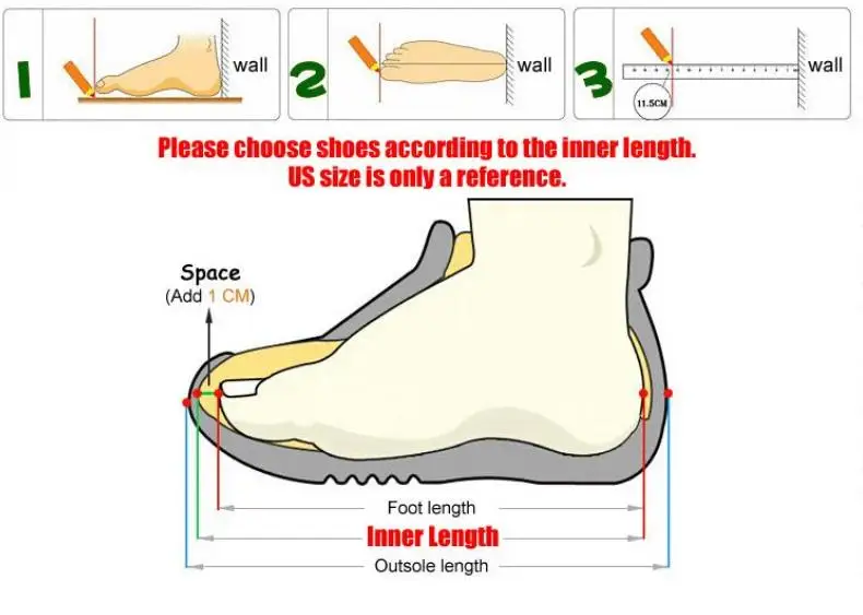 Поскольку все размеры детской обуви отличаются, при заказе детской обуви необходимо ориентироваться на наш размер и внутреннюю длину.