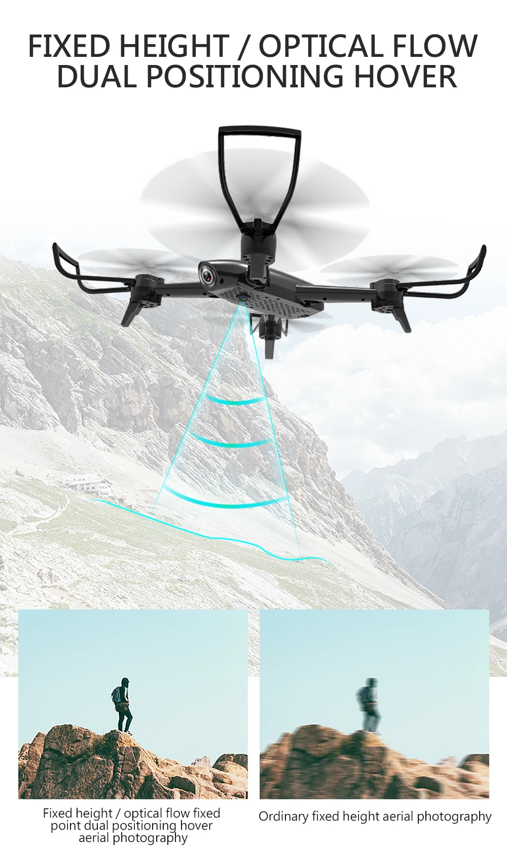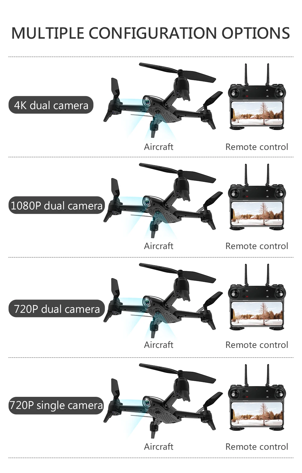 Обратите внимание, что у камеры только одна версия 720P, отверстие в нижней части дрона-это отверстие для двойной камеры Версии 1080P и двойной камеры версии 4K. Он не сломан, также приложение для дрона камеры 720p отличается от приложения для дрона камеры 1080P или 4K, поэтому вам нужно отсканировать другой код и загрузить его из другого руководства, нет приложения в руководстве пользователя. Спасибо. Описание: Артикул: SG106 Материал: АБС Цвет: черный, белый (по желанию) Частота: 2,4 г Канал: 4CH Гироскоп: 6 осей Камера: 4K, 1080P или 720P Фото: 4096*3072 или 1920*1080 или 1280*720 Видео: 2048*1080 or1920 * 1080 или 1280*720 Аккумулятор квадрокоптера: 3,7 в, 1600 мАч, Lipo аккумулятор (входит в комплект) Батарея передатчика: 2 батареи AAA (не входят в комплект) Время полета: около 22 минут Время зарядки: около 150-180 минут Радиус действия R/C: около 100 м Размер квадрокоптера: 27x27x7 см (без защитной крышки) 32x32x7 см (с защитной крышкой) Вес квадрокоптера: 140,6 г Посылка: 33,5x21x8,6 см Вес посылка: 373,8 г Особенности: -Встроенная двойная широкоугольная камера 1080P или 4K HD прекрасно настроена для съемки потрясающих снимков и видео с неба. -Позиционирование оптического потока помогает дрону достичь отличной производительности в точном месте, что обеспечивает стабильный полет. -С функцией режима удержания высоты обеспечивает стабильный полет. -Благодаря жесту фото и функции записи ваша фотография станет более удобной и замечательной. -Отслеживайте полет, вы можете нарисовать желаемую дорожку полета на телефоне, а Квадрокоптер будет летать по линии, которую вы рисуете. -С функцией Wi-Fi можно подключить приложение для фотосъемки, видео, передачи в реальном времени через Изображение камеры телефона. -В безголовом режиме нет необходимости регулировать положение самолета перед полетом. -Функция One key to return позволяет легко найти дорогу домой. -Smart follow, Дрон следует за движущимся пультом дистанционного управления и выполняет функцию наблюдения. -Он может реализовать 3d-падение на 360 градусов в четырех направлениях с 4 светодиодный дами. -Технология 2,4 ГГц для защиты от помех. -4 канала, которые могут совершать полеты по восхождению, спуску, вперед, назад, влево, вправо и вращение на 360 градусов. -6-осевой гироскоп, обеспечивающий более стабильный полет и простой в управлении. -Аккумулятор большой емкости 3,7 в, 1600 мАч, поддерживает максимальное время полета 22 минуты. -Фюзеляж квадрокоптера изготовлен из высокопрочного и устойчивого инженерного пластика, легкий и прочный. Функция: вверх/вниз, вперед/назад, поворот влево/вправо, боковой фонарь, светильник, Безголовый режим, автоматический возврат одной кнопкой, позиционирование оптического потока, фонасветильник трека f, режим удержания высоты, фото жестов, видео жестов Посылка 1 x Квадрокоптер SG106 RC 1 передатчик 1 Аккумулятор 3,7 в 1600 мАч 1 x USB-кабель для зарядки 4 запасных пропеллера 4 x защитная крышка 2 шасси 1 отвертка 1 х Руководство