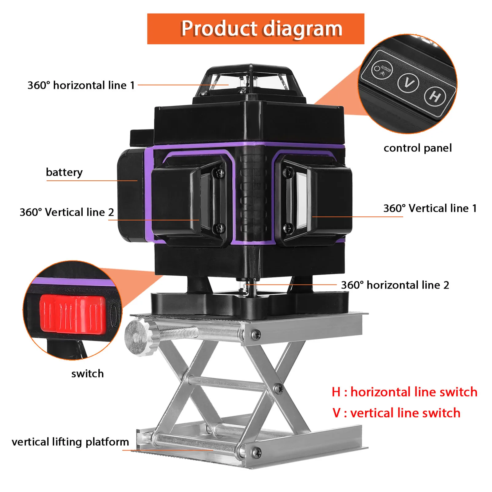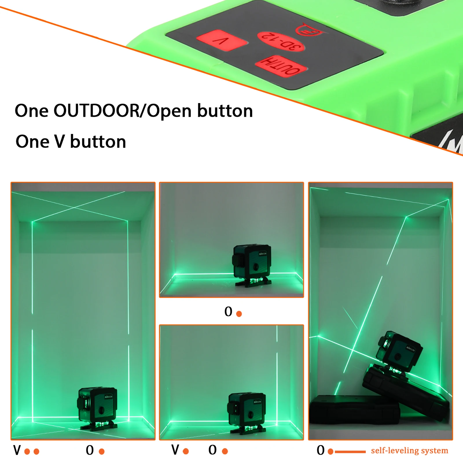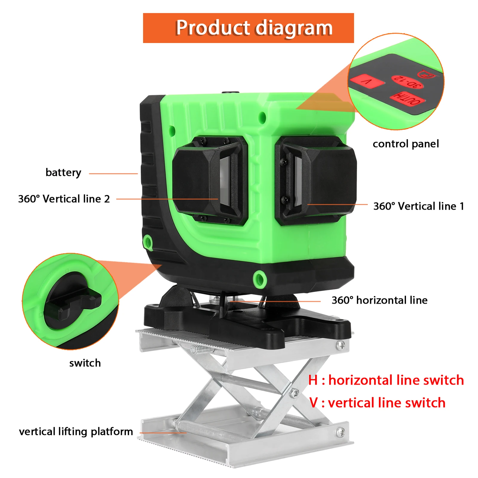 Это своего рода лазерный уровень crossline, каждое окно может запускать 4 лазерных линии, всего 12 линий для более тонкого позиционирования, с системой самонивелирования, гибкостью и стабильностью.