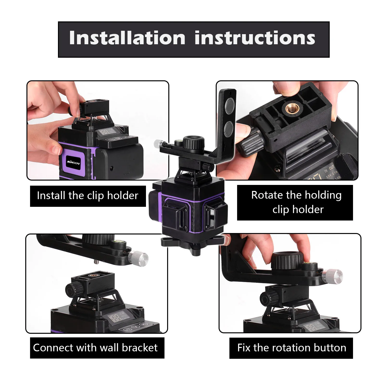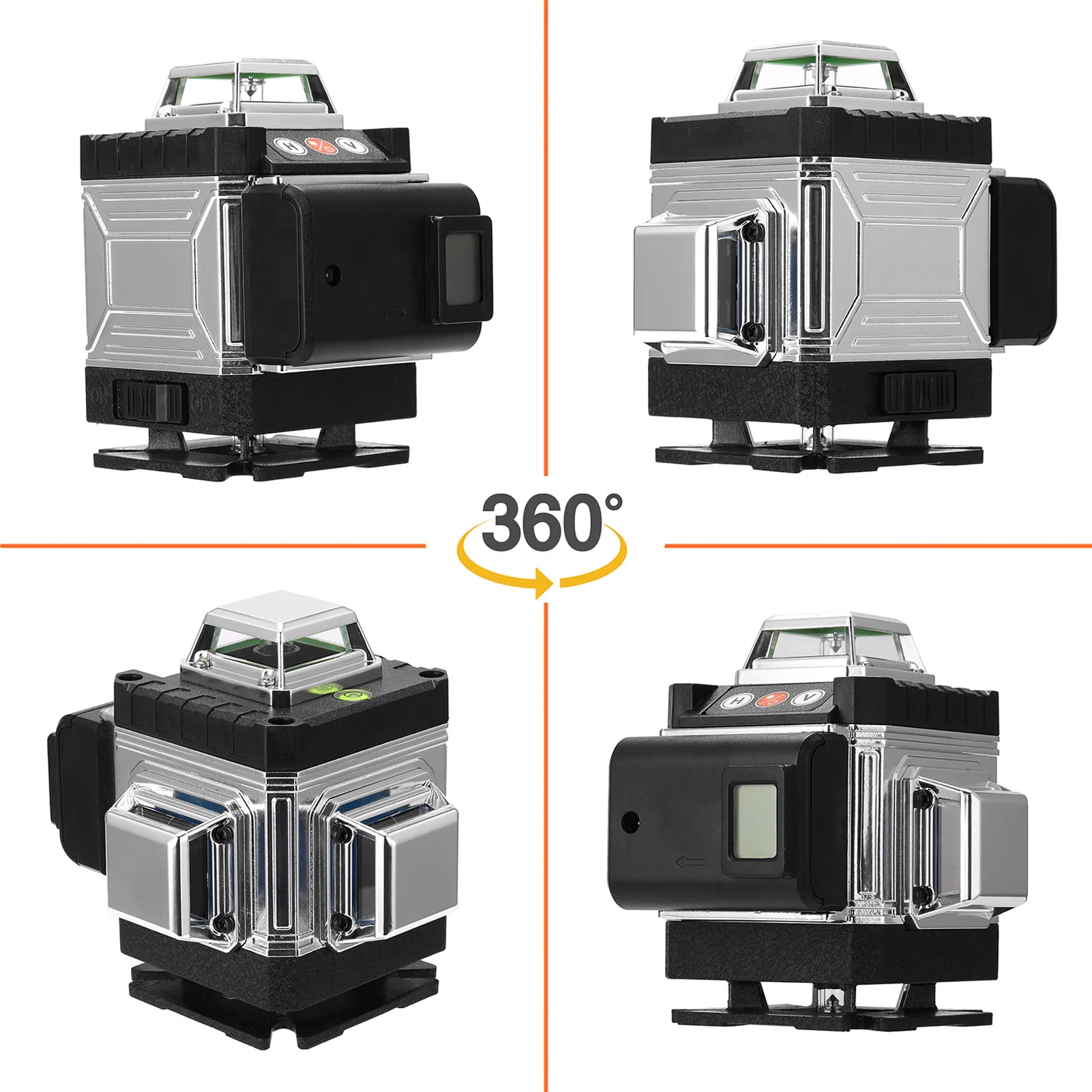 Оснащен функцией самостоятельной калибровки, ≤ 4 ° автоматическое выравнивание, но если угол превышает 4 °, лазерный светильник будет продолжать мигать, а также имеет звуковой сигнал, чтобы напомнить вам, чтобы сбросить их на ровную поверхность.