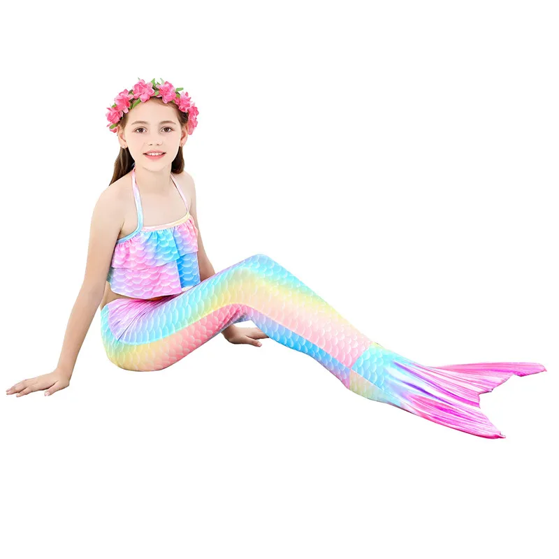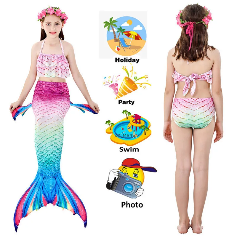 Дети хвост русалки с моноластами Флиппер Русалочка Костюм косплей бикини купальник «русалка» платье для девочек костюм на Хэллоуин