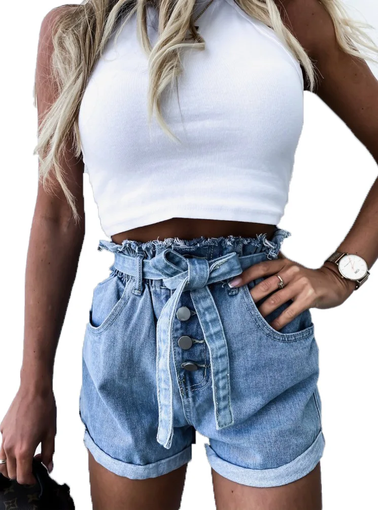 Женские джинсовые шорты на шнуровке летние пикантные облегающие с эластичной