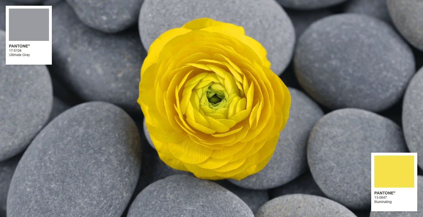 Сочетание PANTONE 17-5104 Ultimate Gray + PANTONE 13-0647 подсветки является аспирационным и дает нам надежды.