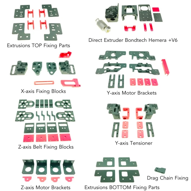 * В комплект входят все детали оси XYZ. Все наши блоки изготовлены из высококачественных материалов из алюминиевого сплава. Прямой экструдер изготовлен из Bondtech Hemera + E3D V6 hotend + всех металлических 4010 охлаждающих вентиляторов, он имеет отличную производительность с хорошей функцией отвода тепла.