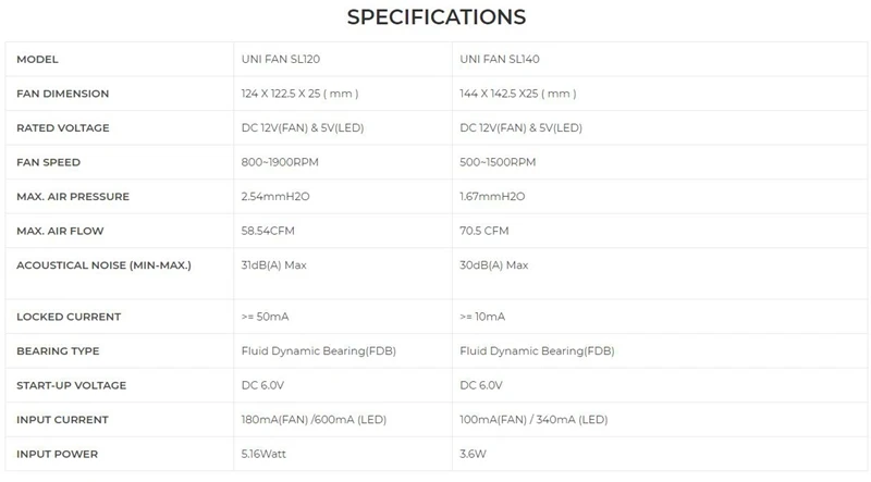 Номинальное напряжение: 12 В постоянного тока (вентилятор) и 5 В (светодиодный)