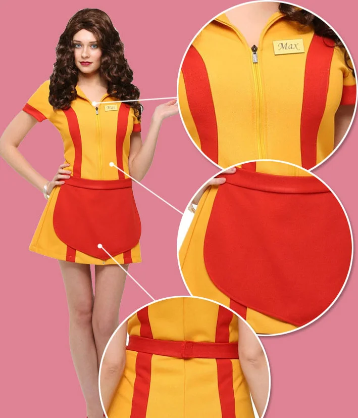 Маскарадный костюм для девочек с двумя слоями, макс. черный костюм Каролин уэсбокс ченнин, одежда для бара, ресторана, официантки, фартук, платье, значок на Хэллоуин