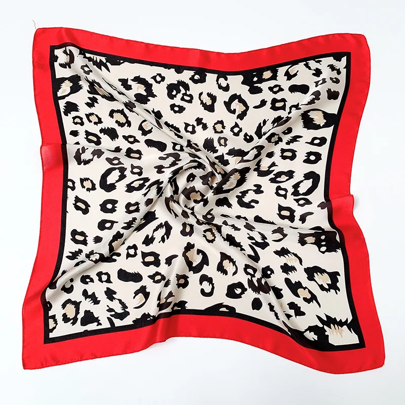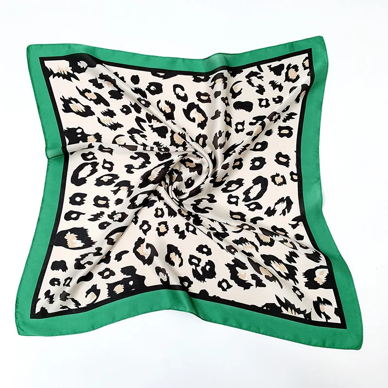 Квадратные шелковые шарфы для женщин 70*70 см, атласный хиджаб с леопардовым принтом, повязка на голову, летние банданы, тюрбан, повязка на голову, платок для волос
