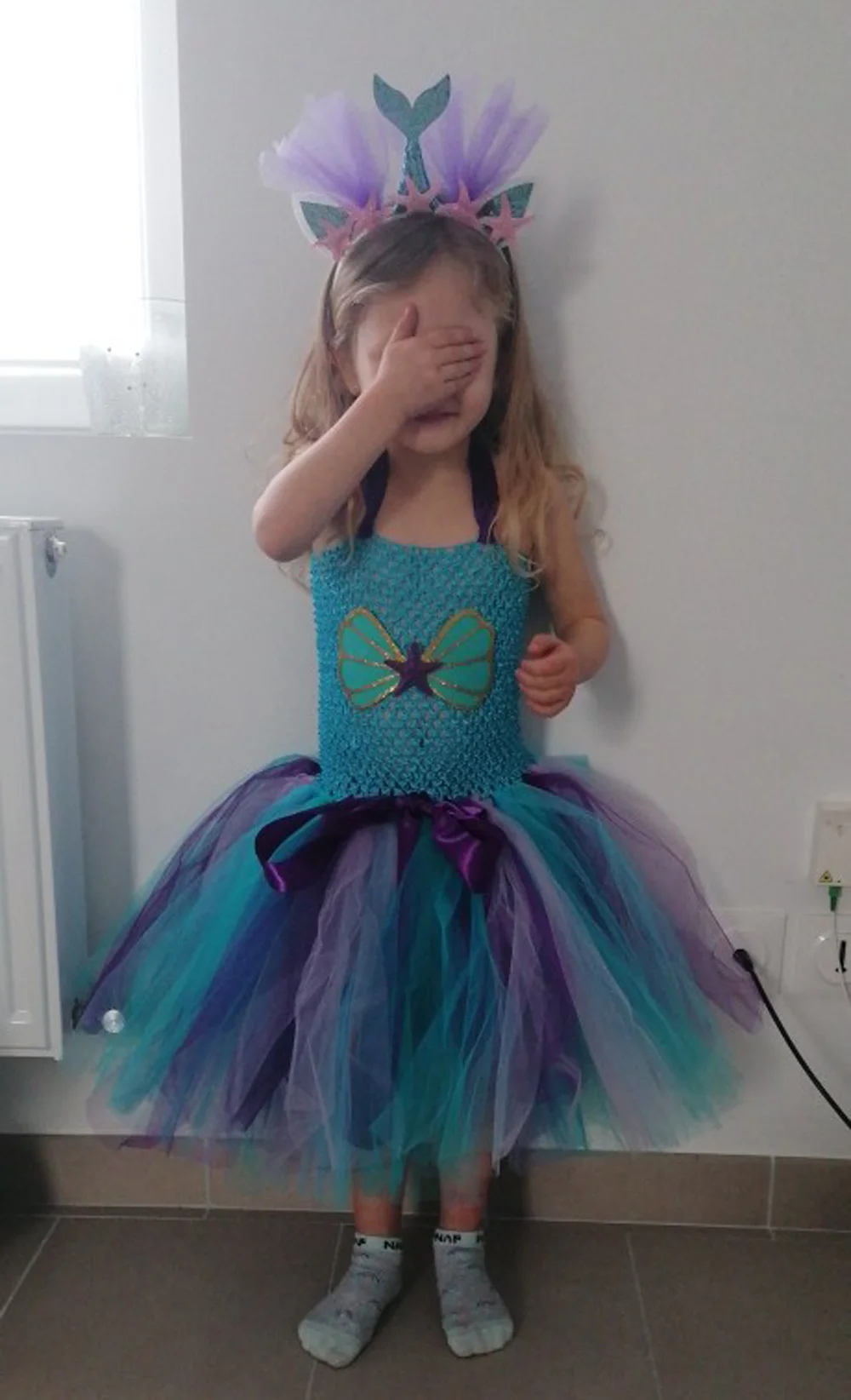 Тема: костюм Русалочки для девочек на день рождения. Материал: высококачественные нейлоновые тюлевые полоски, эластичное вязаное крючком верх, атласная лента Цвет: небесно-голубой, фиолетовый, лавандовый. Повод: косплей, Хэллоуин, карнавал, джунгли сафари, день рождения, вечерние, Рождество, фотография, танец, представление, праздник, новый год, выпускной, карнавал, Рождество, фестиваль, Пасха, карнавал, свадьба, день Святого Валентина, Первое причастие, цветочница, Крещение, День благодарения, Необычные Вечерние маскарадные костюмы и т. Д. Советы: 1. Индивидуальный заказ и Прямая поставка приветствуются, возможен индивидуальный дизайн/цвет/размер/идея. 2. Детское платье русалки без подкладки внутри. Ниже показаны фотографии платья-пачки.