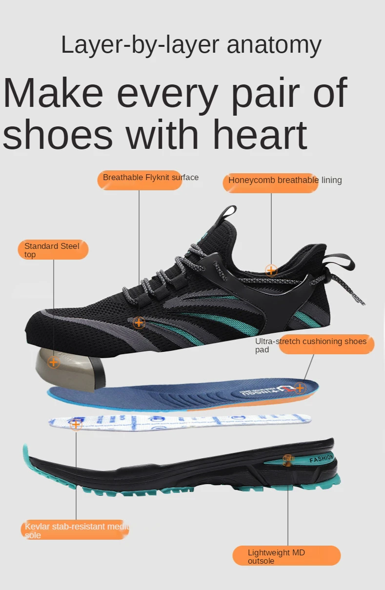 Один вид материала: плетеная дышащая ткань + кевларовая стелька + стандартная стальная Баотоу + подошва из ЭВА