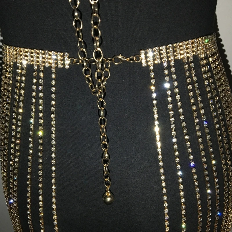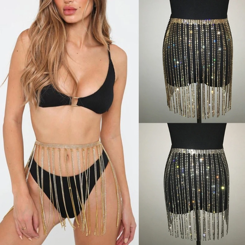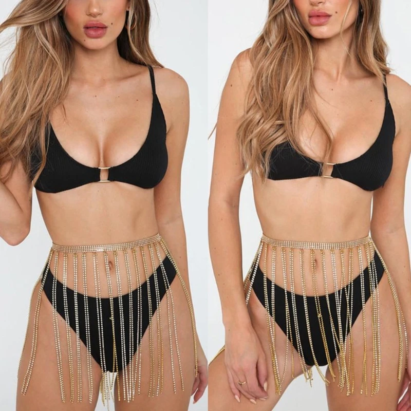 Блестящая цепочка для тела с кристаллами и кисточками, реквизит для танца живота, цепь на бедра для девушек, обязательный предмет для ночных клубов, пляжные вечерние, C1FE