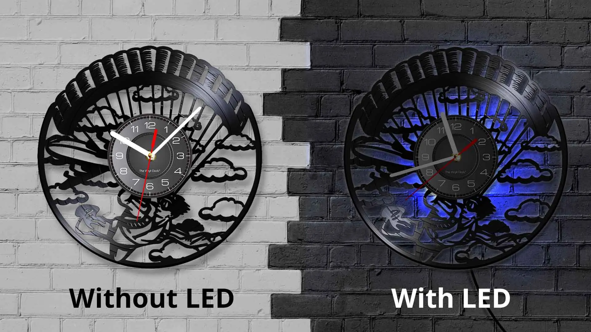 Если вы выбираете светодиодный версия светильник ing настенные часы, вам будет предоставлена 16 ключей пульта дистанционного управления, чтобы настроить цвета светодиодный виниловые светильник. С пультом дистанционного управления, вы будете иметь различные настройки светильник, которые включают в себя Включение или выключение светильник s, пауза или воспроизведение, тусклый или изменение скорости светильник s, а также для создания радуги цветов. Идеально подходит для украшения стен, а также отлично подходит в качестве подарка.