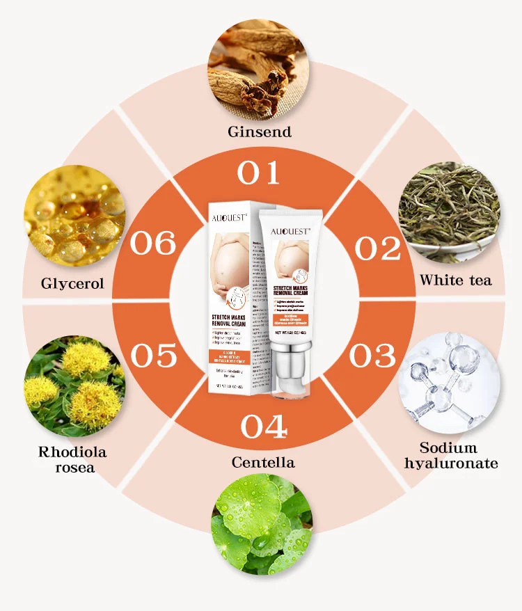 Ваша жизнь не должна быть нарушена растяжками после рождения ребенка. Наш крем для Удаления растяжек изготовлен из нескольких натуральных ингредиентов, включая глицерин, масло виноградных косточек, масло жожоба и так далее. Он может эффективно и мягко осветлить растяжки и улучшить шрам для беременных. Верните свой гладкий и нежный живот, верните свою счастливую жизнь.