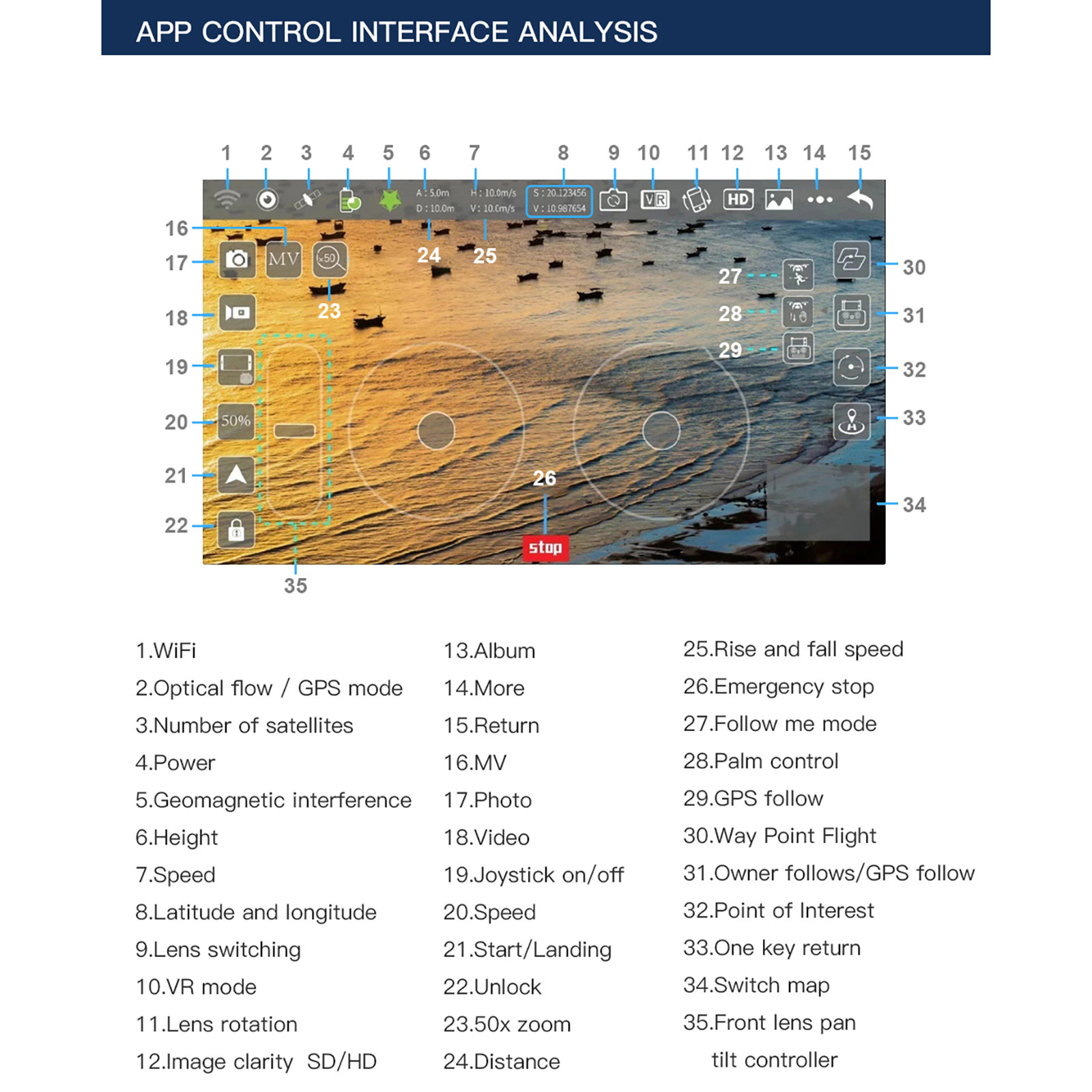 2. ① GPS smart follow: после того, как самолет подключен к GPS, откройте приложение
