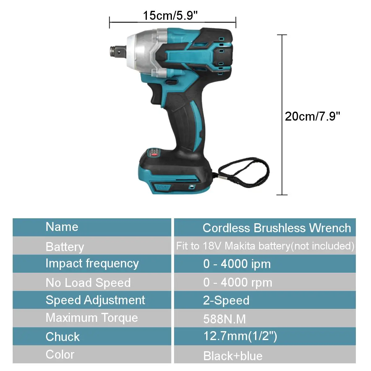 18 в 588N.m. Литий-ионный бесщеточный беспроводной 1/2 ''ударный ключ сменный драйвер для батареи Makita Особенности: High 588N.M высокий крутящий момент, плавный Переключатель изменения скорости. Power мощный электрический ключ, многоцелевой, супер мощный. Shaft вал из вольфрамовой стали, высокая твердость и износостойкость. ▲Подходит для строительных площадок, технического обслуживания, деревообработки и т. Д. ▲Бесщеточный двигатель не генерирует искры, когда он работает, и двигатель не изнашивается.