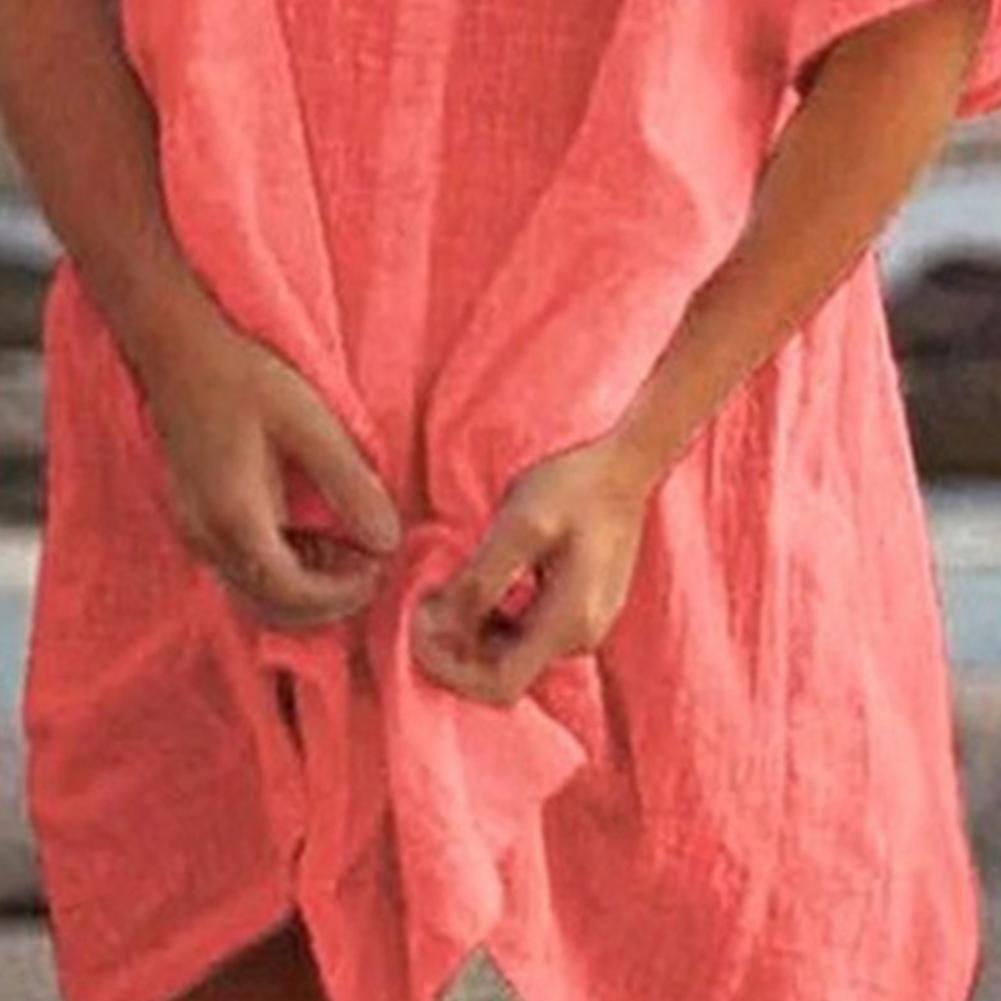 Женская льняная блузка, свободная блузка с асимметричным подолом и пуговицами на пуговицах, женская рубашка с отложным воротником, лето 20213,60-6,76 долларов США/штука