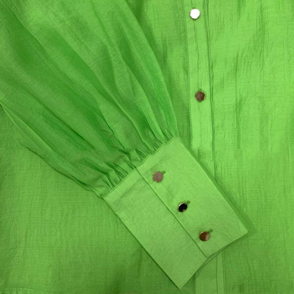 Офисный женский топ с длинными рукавами-фонариками и отложным воротником на пуговицах Свободная блуза-рубашка