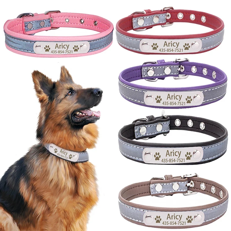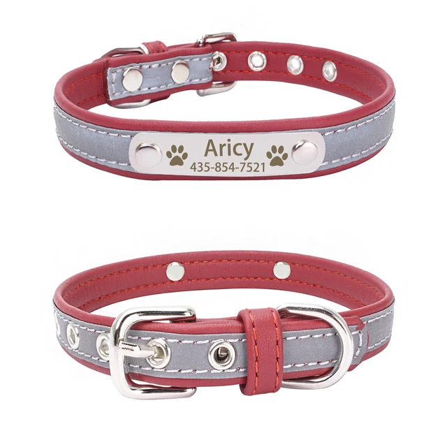 Ошейник для домашних животных с бесплатной гравировкой, кожаный ошейник для кошек и собак, аксессуары для домашних животных, идентификационный ярлык для маленьких средних собак B05