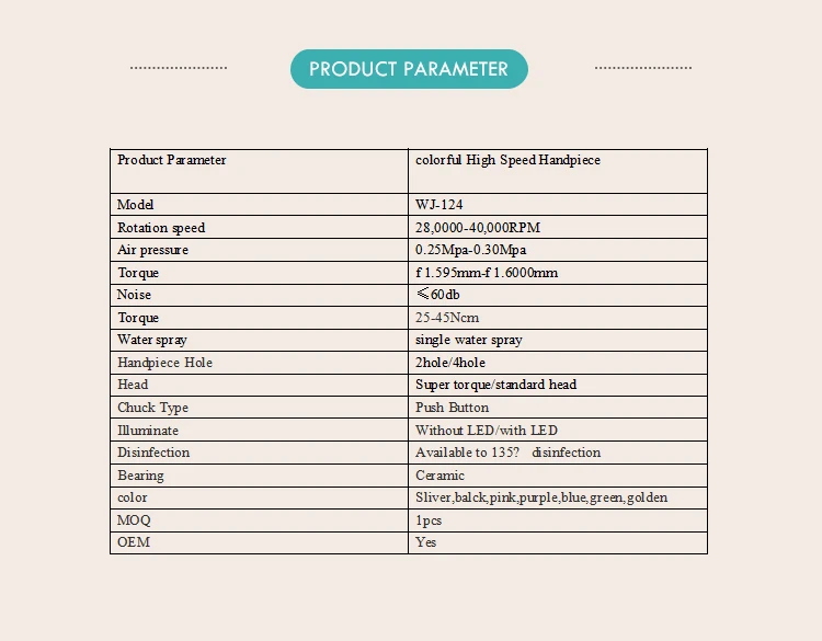 Параметры продукта: красочные высокоскоростные наконечники