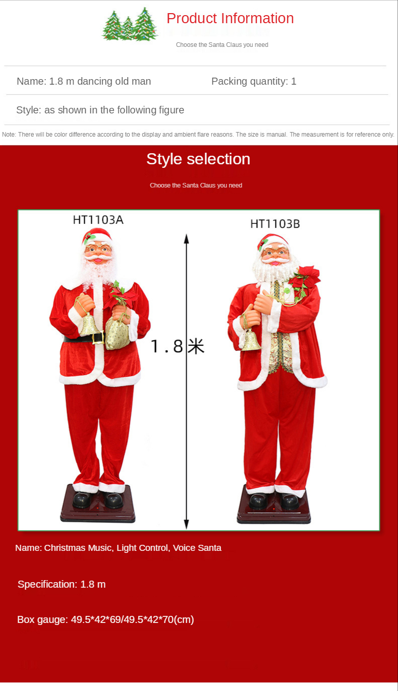 Рождественские украшения торговый центр приветствует 1,8 м Санта Клаус, Голосовая активация Танцы Музыка электрический Санта Клаус Новый год