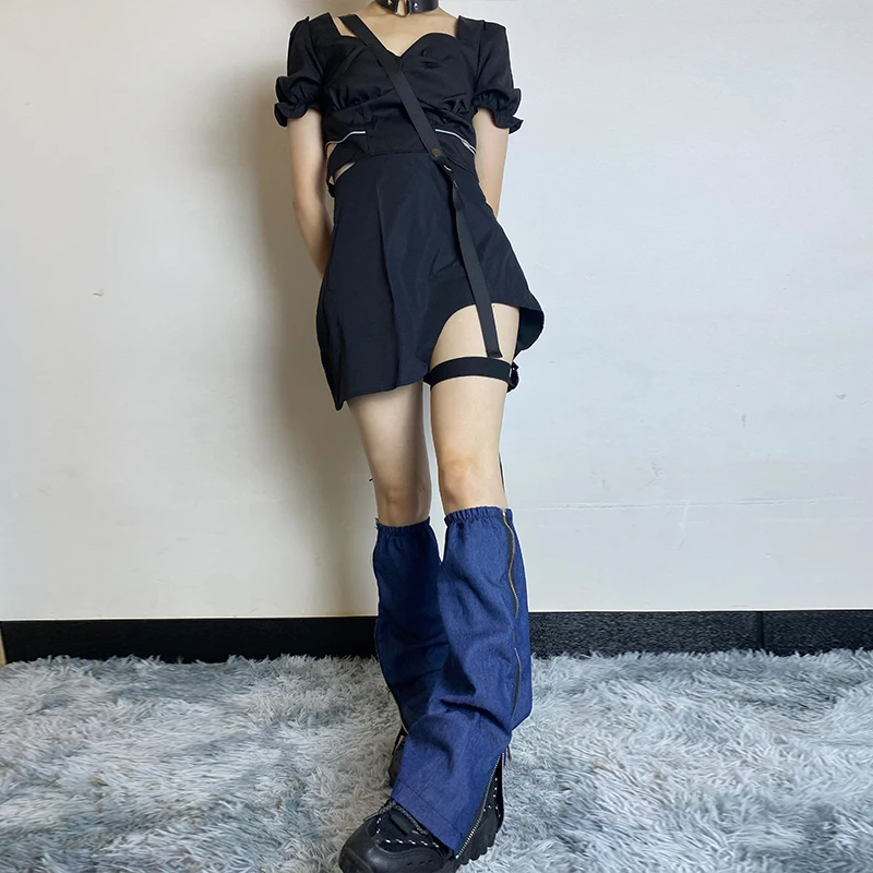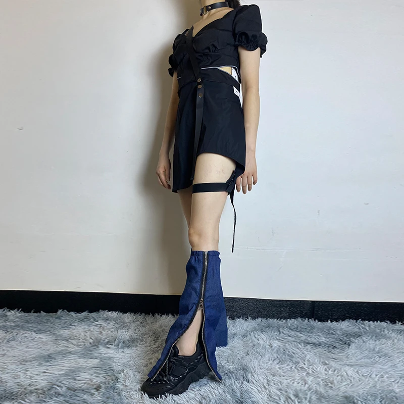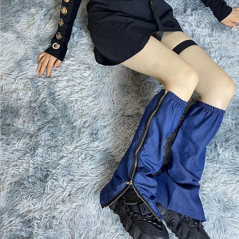 Японские летние готические носки до щиколотки на молнии для девочек в стиле Харадзюку гетры синие женские джинсовые гетры в стиле панк корейская модная одежда